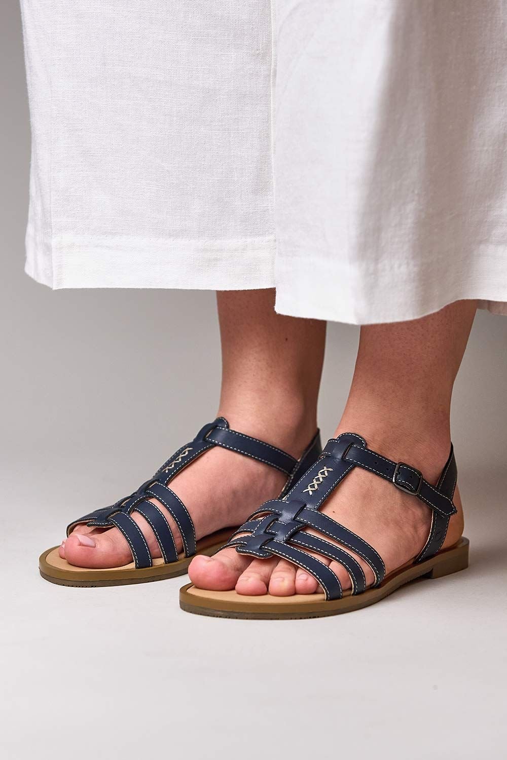 The Moshulu Women's Indigo Leather Strappy Sandals is ideal for casual, beach, outings.