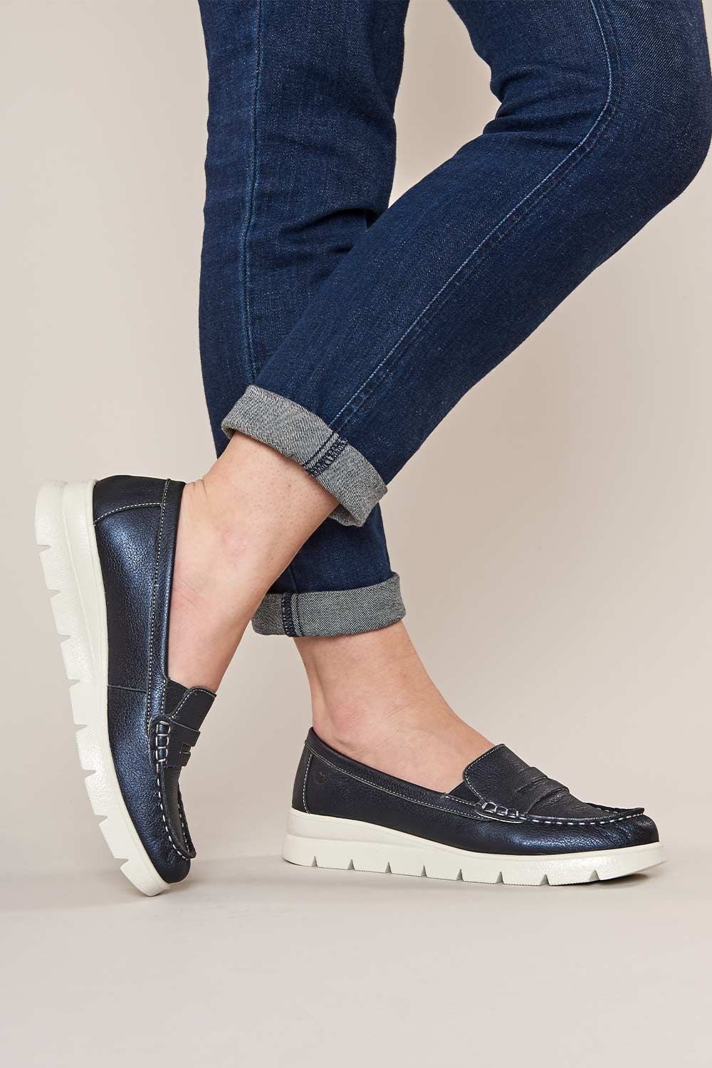 The Moshulu Indigo Suede Moccasin Loafer Trainers is ideal for casual, everyday, outings.