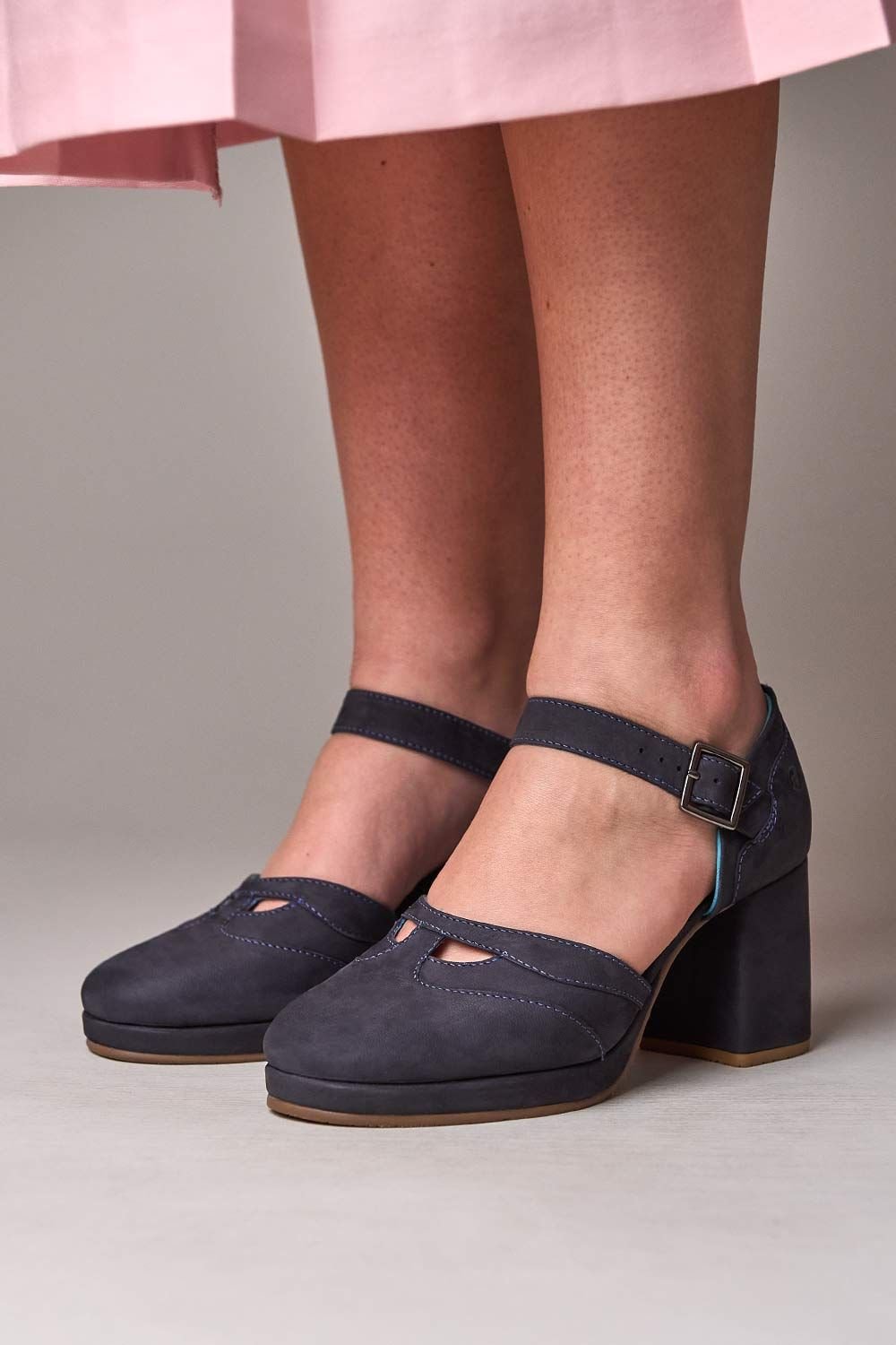 Chic Moshulu heels designed for comfort. Featuring a chunky heel, adjustable strap, and grippy sole for stability, these shoes have feminine cut-outs for a vintage touch. Perfect for garden parties and summer evenings.