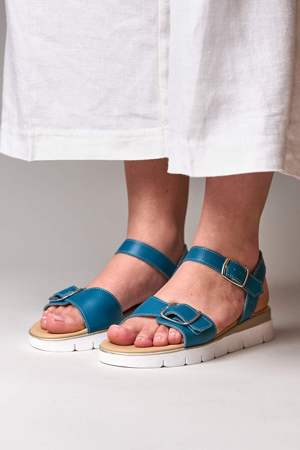 Step into summer with Philly, the effortlessly stylish city sandal! With adjustable buckles, plush cushioning, and a flexible sole, it offers a secure, custom fit for all-day comfort. Crafted in smooth teal leather, Philly elevates every outfit, from casual days to dressed-up events.