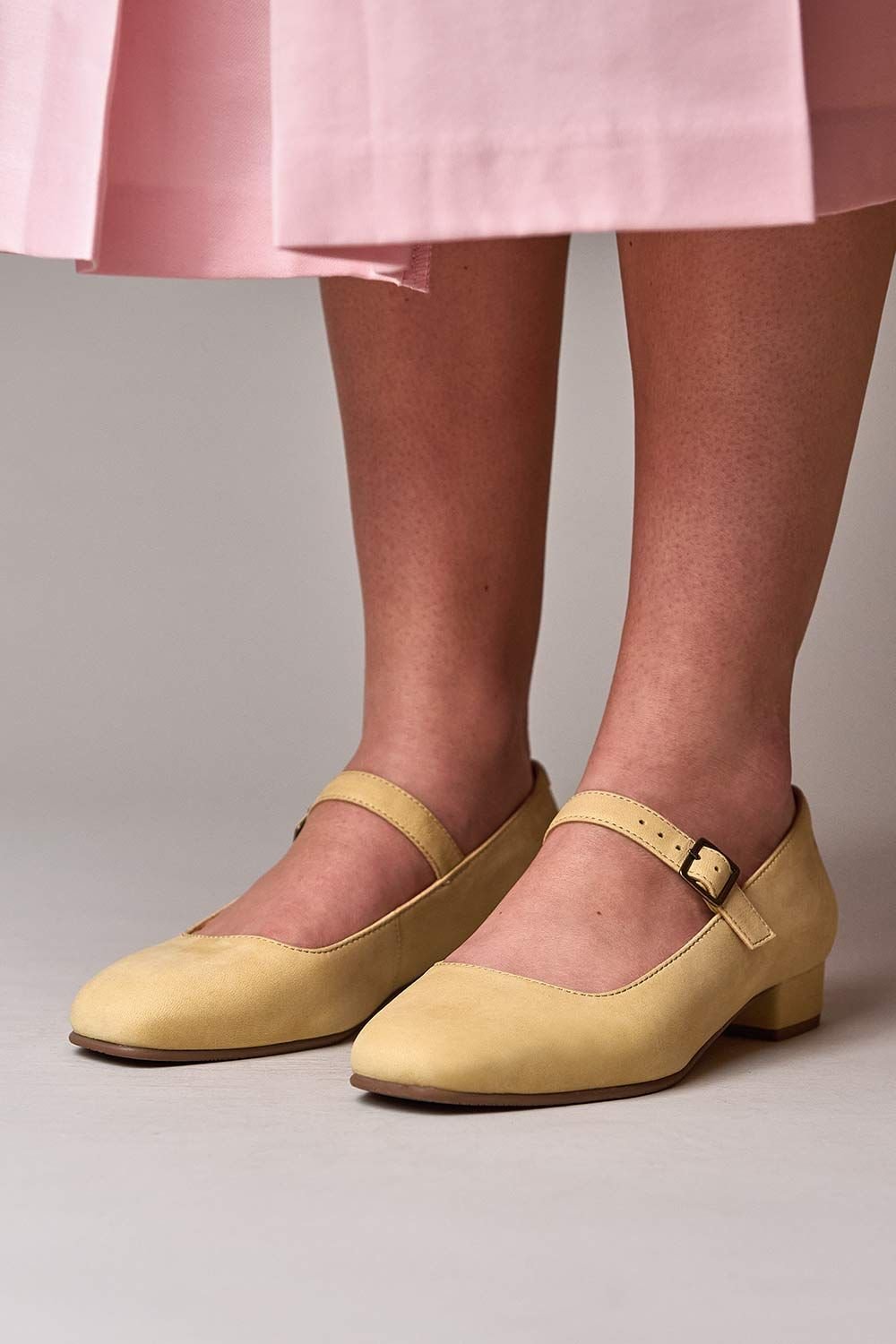The Moshulu Women's Yellow Suede Block Heels is ideal for casual, evening, date-night.