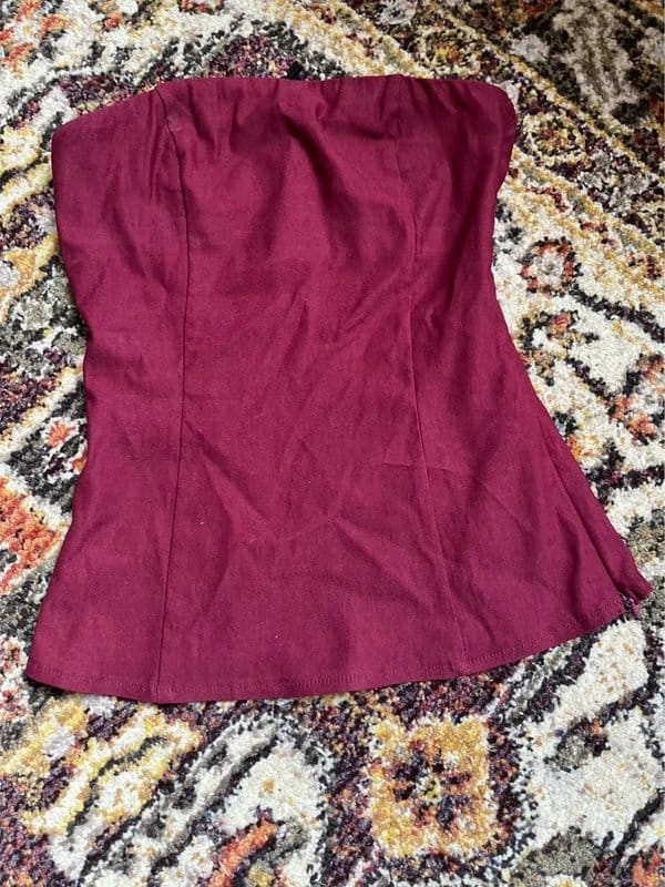 The Motel Burgundy Bandeau Corset Top is available in sizes S.