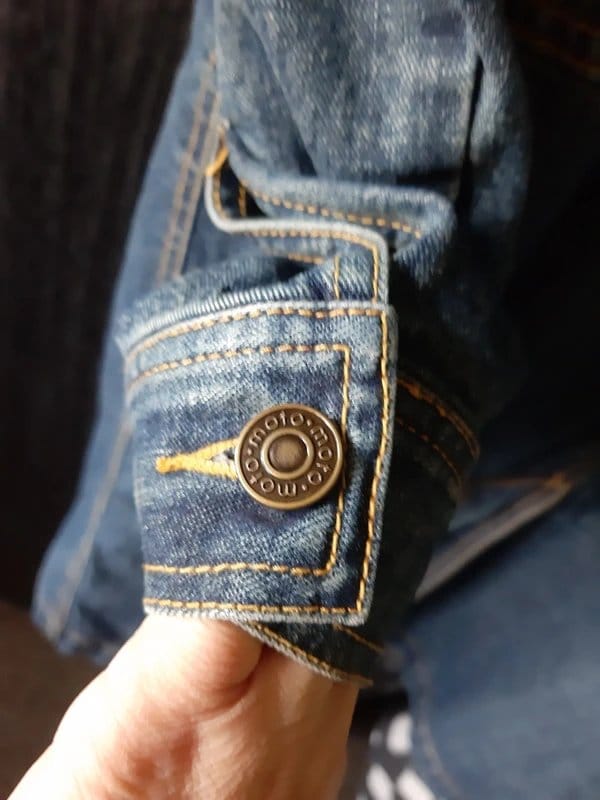 The Moto Navy Blue Denim Jacket UK12 is made from denim.