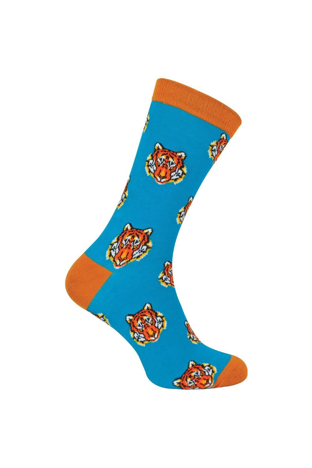 The Mr Heron Men's Turquoise Tiger Patterned Bamboo Socks is available in sizes 6-11.