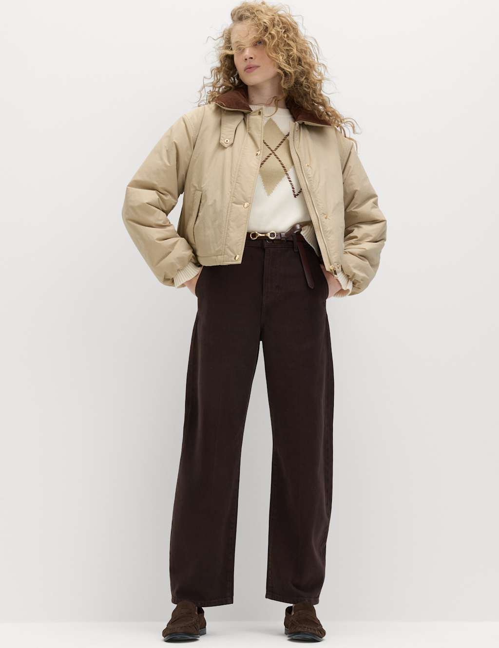 The M&S Pure Cotton Barrel Leg Trousers in Bitter Chocolate is ideal for work, business-casual.