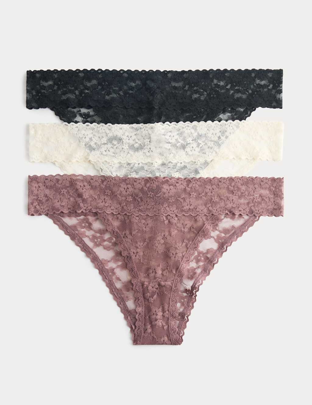 Delicate floral lace gives this three-pack of knickers a soft, feminine feel. They're designed in a low-rise Brazilian shape with added stretch and a flattering cut that offers moderate coverage at the back.