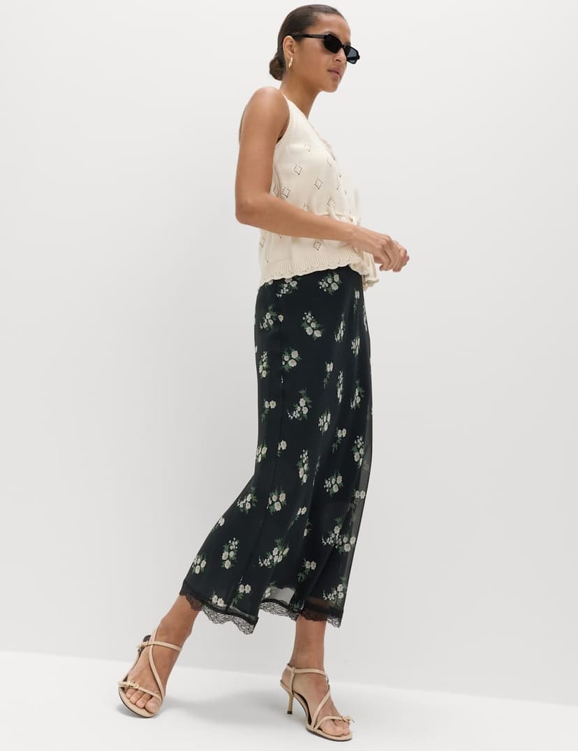 The M&S Black Mix Floral Lace Midi Slip Skirt is ideal for casual, daytime.