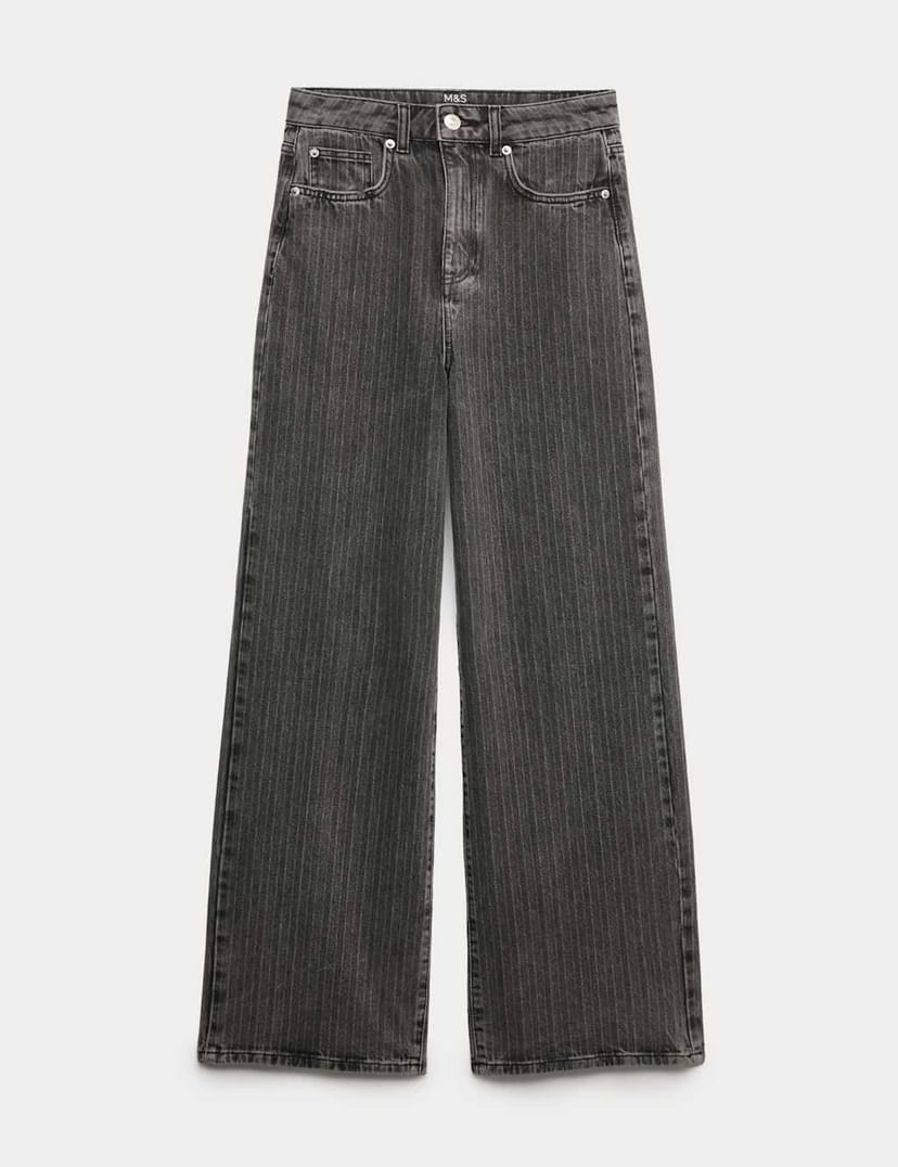 View Marks & Spencer's returns policyUpdate your denim rotation with these stylish and comfortable wide-leg jeans. They're made from breathable cotton and feature a classic five-pocket design and a flattering high-rise waist. Faded pinstripes on the legs bring an elevated finishing touch to these casual staples.