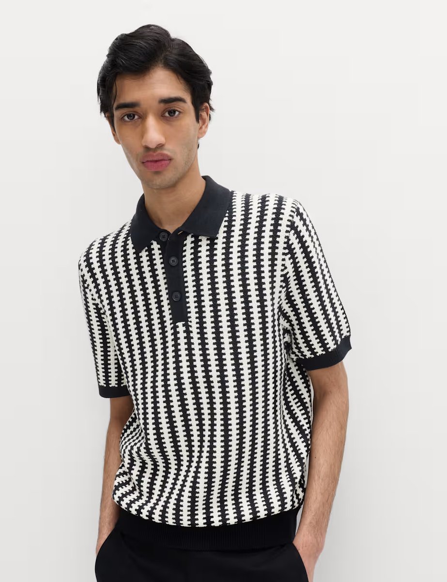 Knitted from pure cotton yarn, this polo shirt feels gentle and breathable to wear. Timeless short-sleeved style, with a three-button placket at the smart collared neckline. Textured vertical stripes add eyecatching detail.