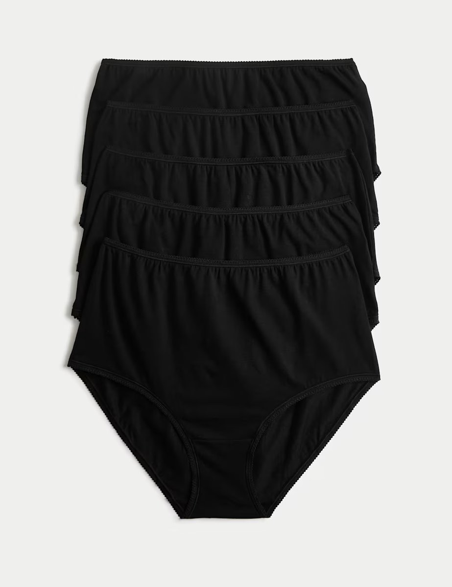 The M&S High-Rise Full Coverage Cotton Lycra® Briefs in Black is available in sizes 10, 12, 14, 16, 18, 20, 22, 24, 26, 28, 6, 8.