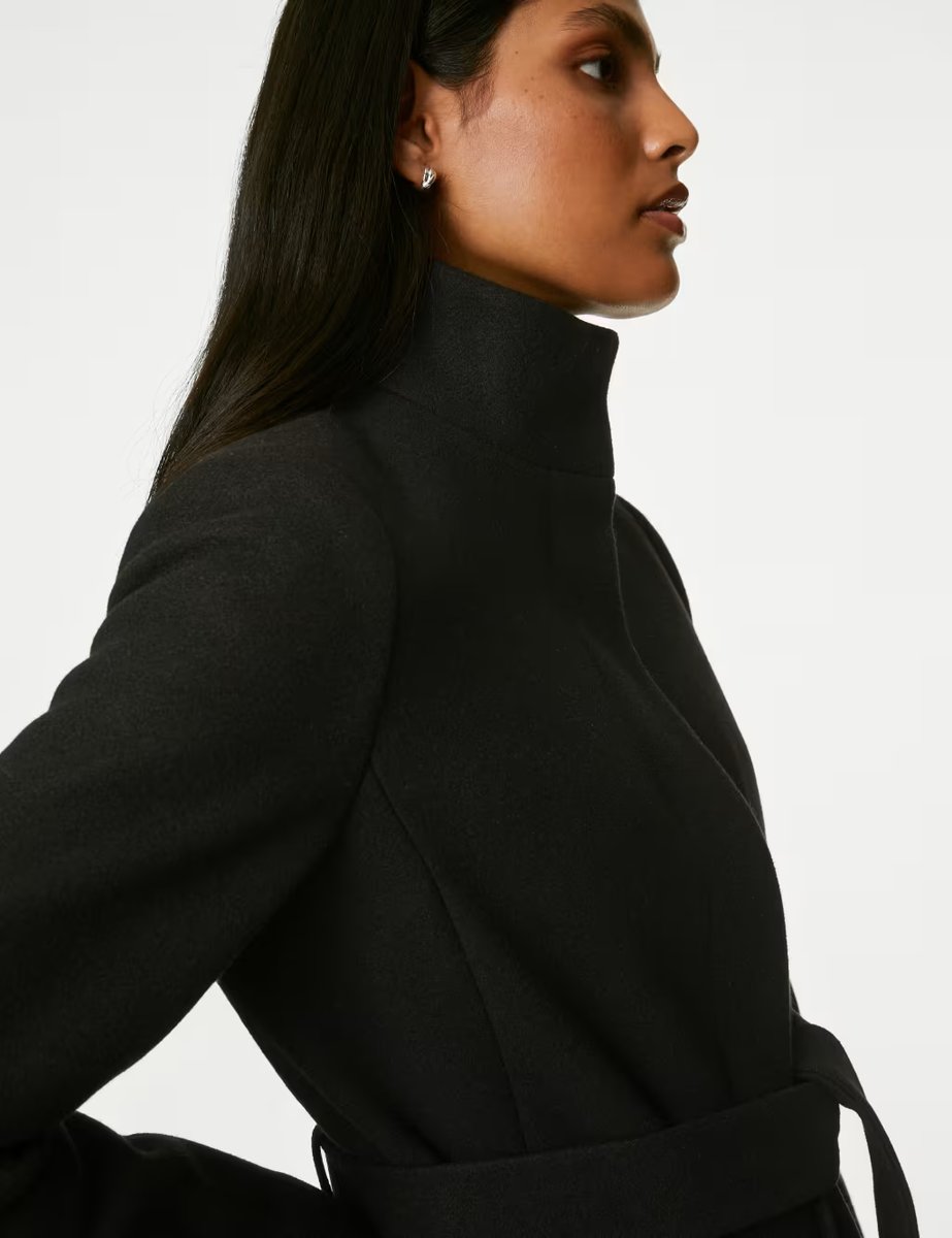 This cosy trench coat from M&S is perfect for the colder months. Designed in black, this trench coat features a funnel neck for extra coverage and a detachable belt that creates a flattering cinched silhouette. The back vent adds easy movement. Crafted from a blend of wool and polyester, it is fully lined for warmth and comfort.