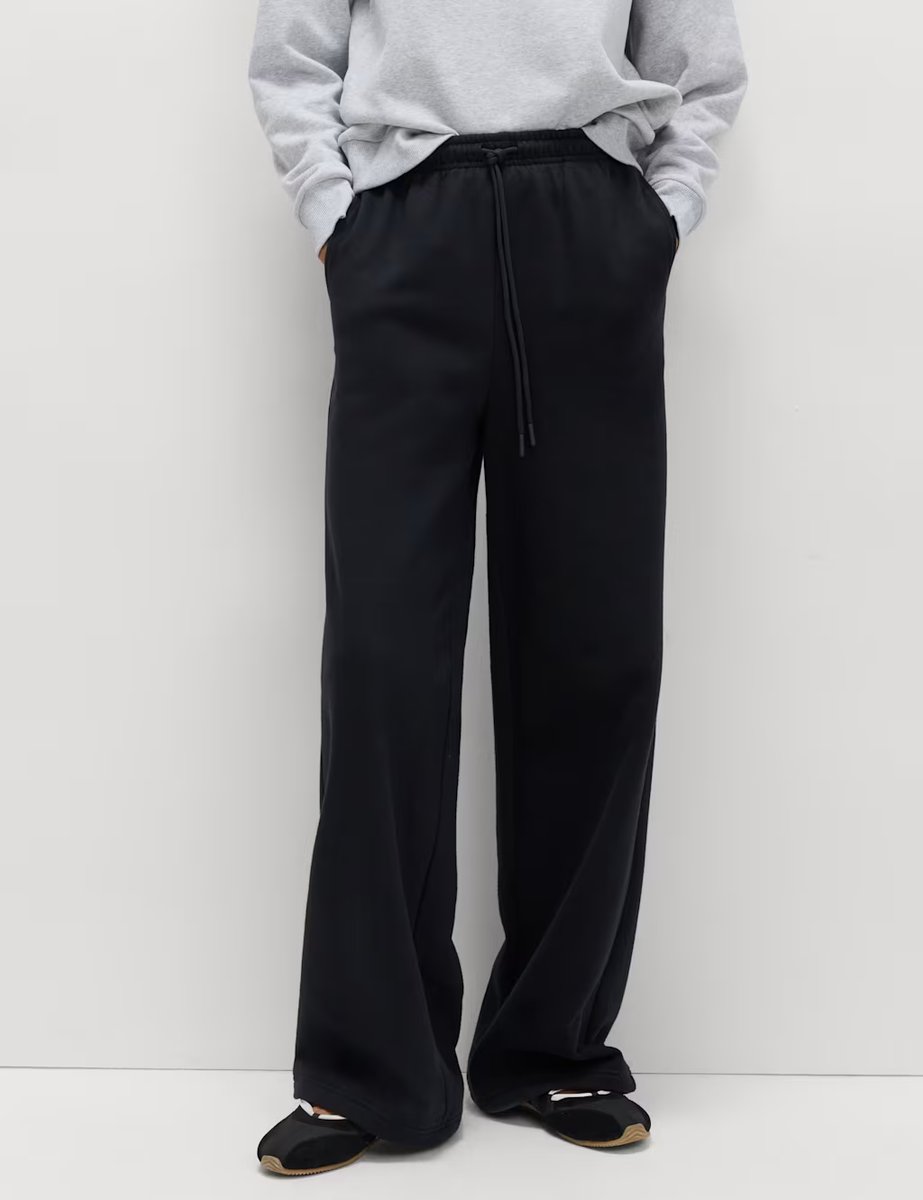The M&S Drawstring Wide Leg Joggers in Black is available in sizes 10, 12, 14, 16, 18, 20, 22, 24, 6, 8.