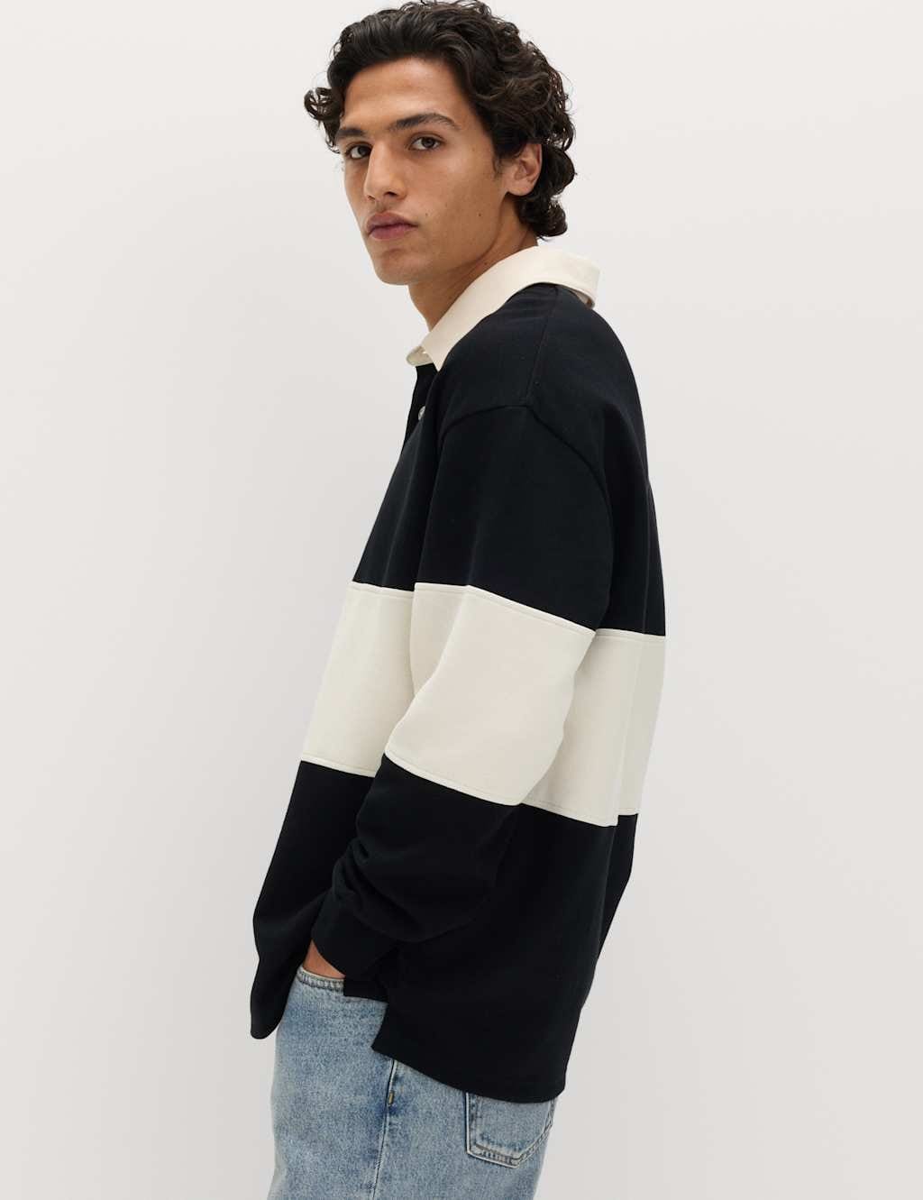 The M&S Black Cotton Rich Pique Rugby Shirt is ideal for casual, weekend.