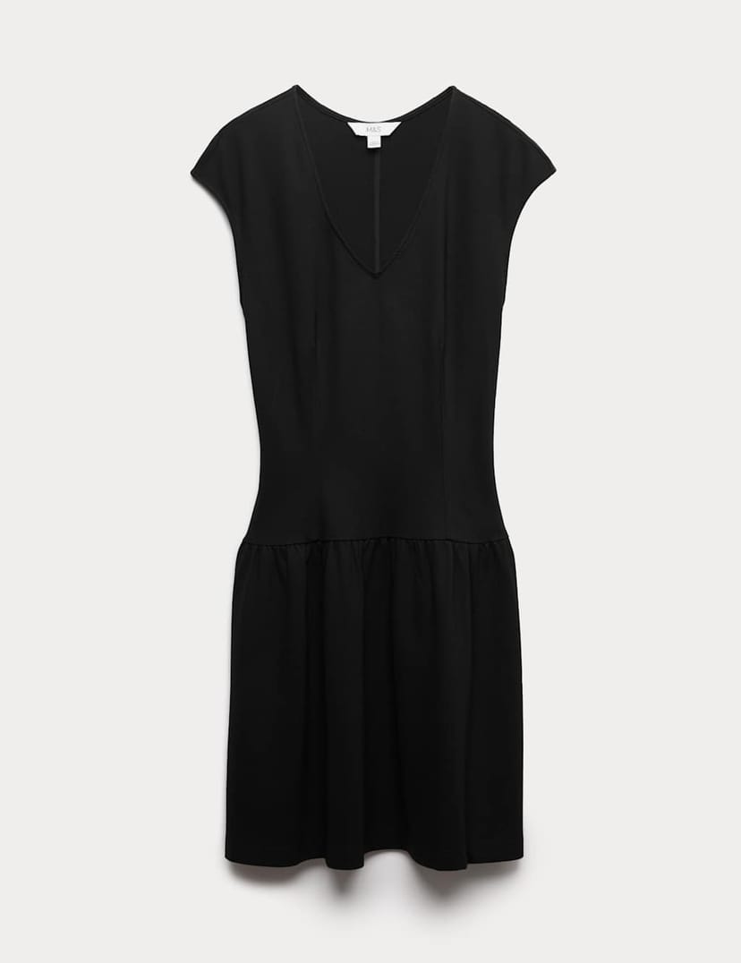 View Marks & Spencer's returns policySophisticated jersey skater dress in black with a V-neckline and cap sleeves. The frilly skirt sits at a mini length, while a dropped waist adds a classic touch. Perfect for effortless style.