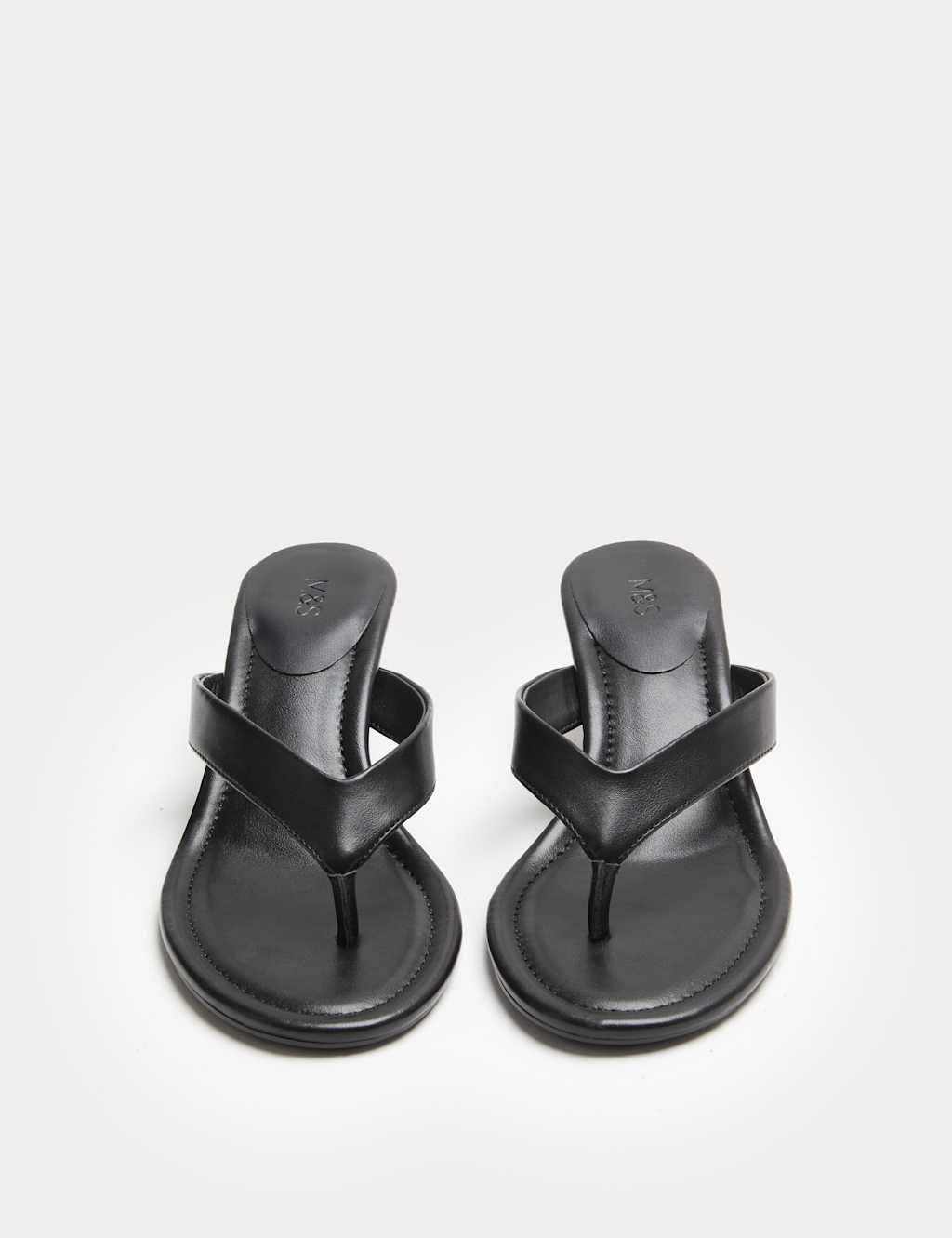 Chic M&S black kitten heel toe post sandals with a toe-post design and wide straps. Perfect for adding a subtle lift to your summer outfits.