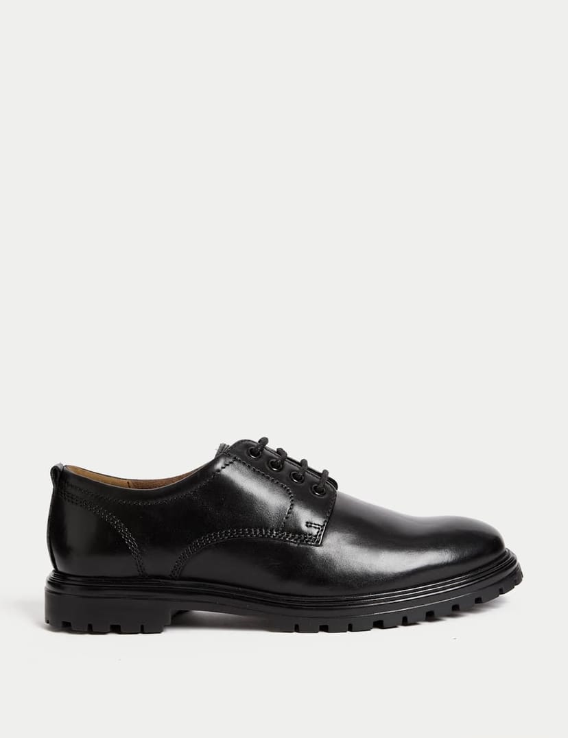 Classic black leather Derby shoes with a modern twist. Featuring a chunky cleated sole and Freshfeet™ technology to keep your feet fresh. Perfect for smart-casual occasions.