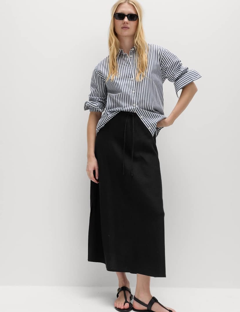 The M&S Black Linen Rich Maxi A-Line Skirt is made from linen.