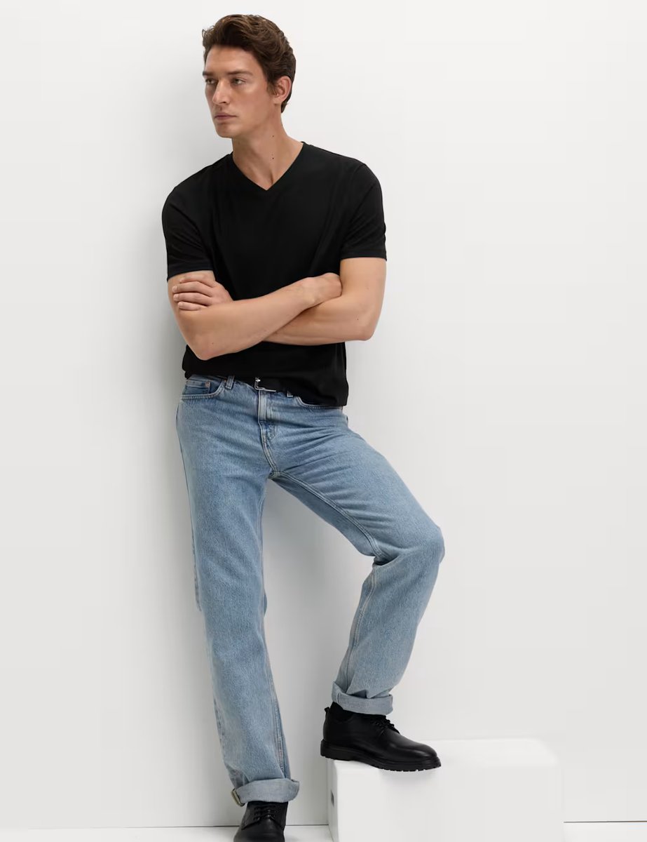 The M&S V Neck T-Shirt in Black is ideal for casual, business-casual, evening.