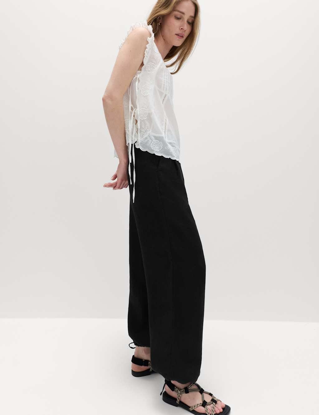 “Pair with a white lace camisole and black strappy heels for a summer evening look.”