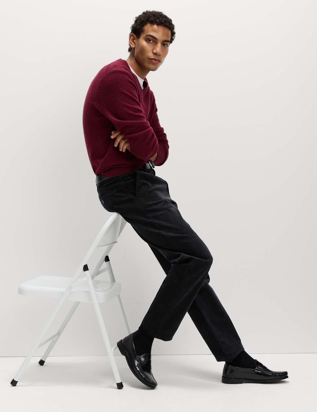 The M&S Regular Fit Corduroy Stretch Chinos in Black is ideal for work, casual.