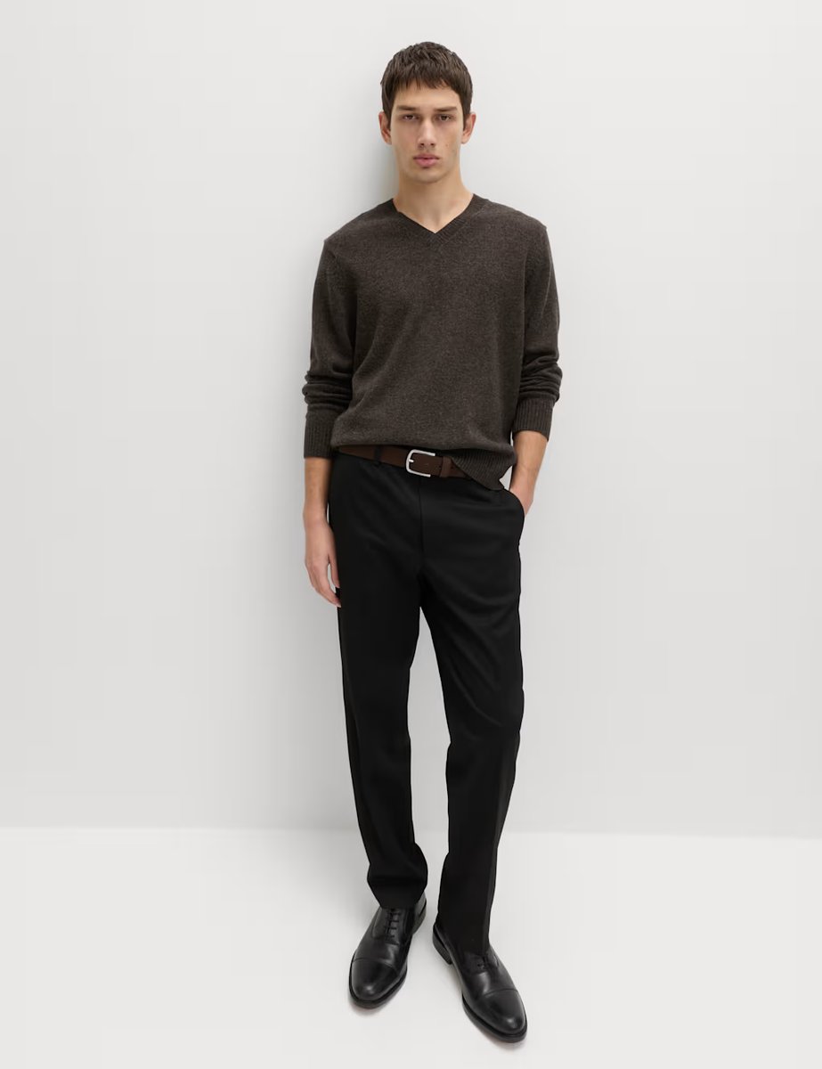The M&S Regular Fit Smart Stretch Trousers in Black is ideal for work, smart-casual.