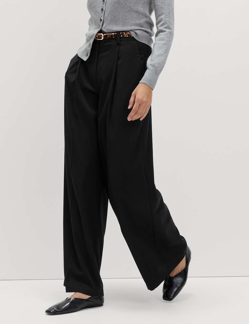 The M&S Regular Fit Wide Leg Trousers in Black is ideal for work, business, smart-casual.