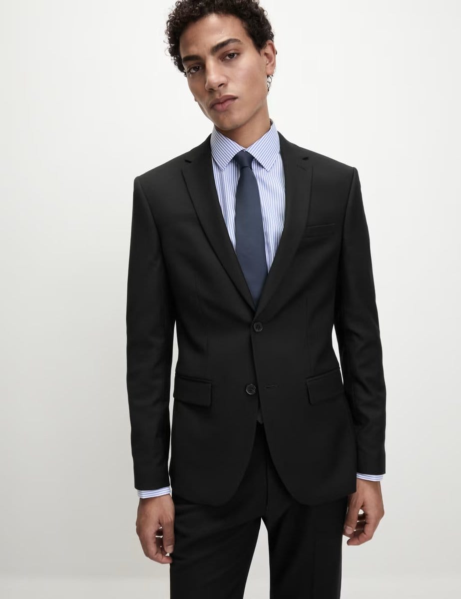 The M&S Skinny Fit Stretch Suit Jacket in Black is ideal for business, formal, work.