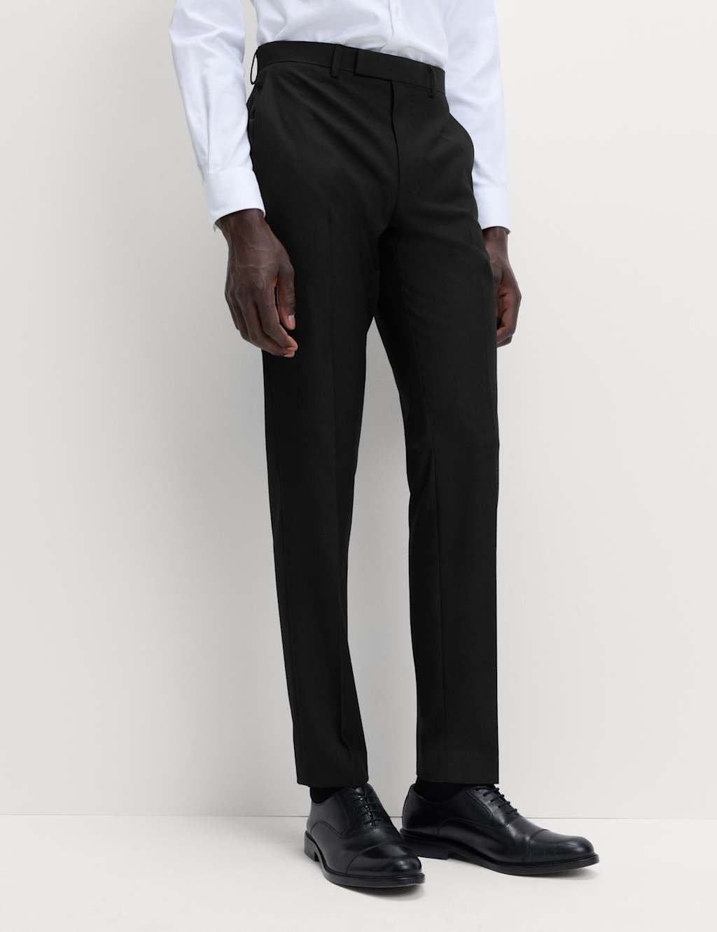 The M&S Slim Fit Stretch Ultimate Suit Trousers in Black is available in sizes 28, 30, 32, 34, 36, 38.