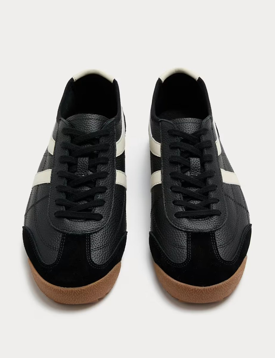 The M&S Slimline Leather Trainers in Black is ideal for casual.