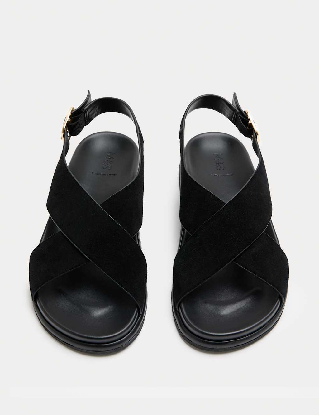 The M&S Suede Crossover Footbed Sandals in Black is available in sizes 3, 4, 5, 6, 7, 8.