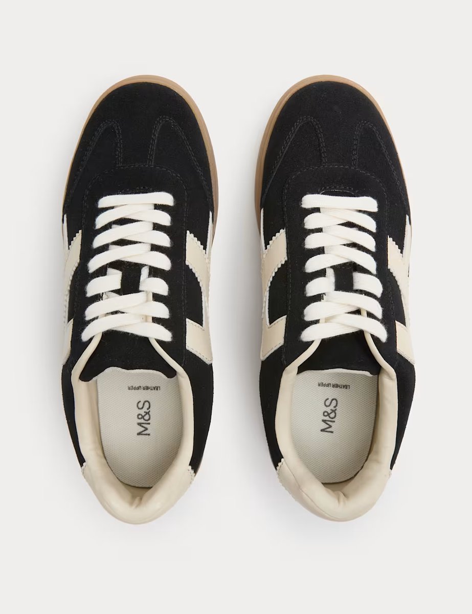 The M&S Suede Side Detail Platform Trainers Black is available in sizes 3, 4, 5, 6, 7, 8.