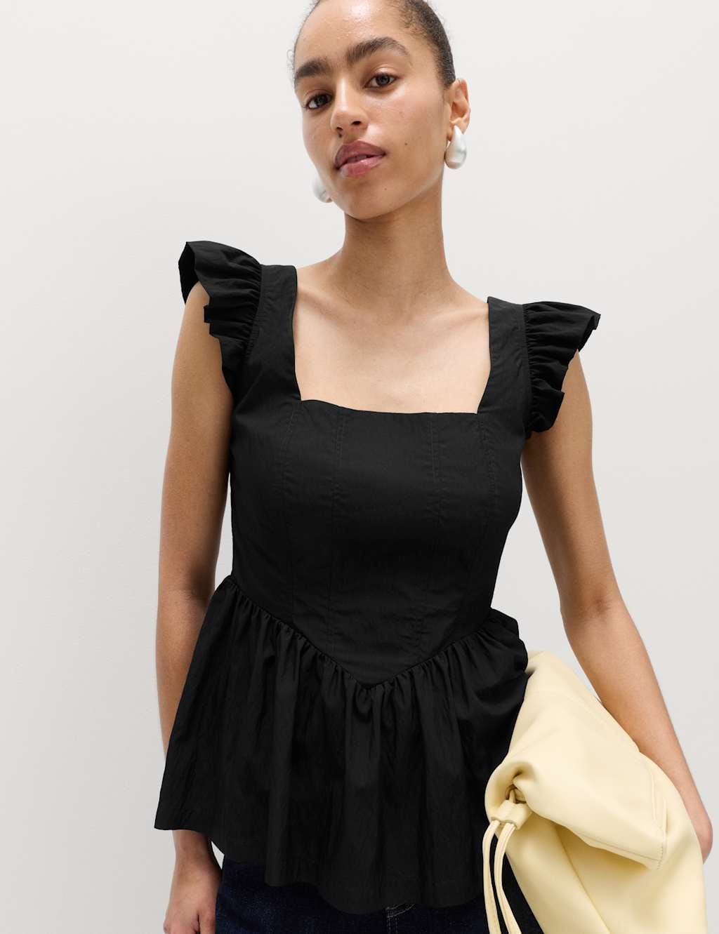 “Pair with high-waisted black trousers and white sneakers for a casual yet chic look.”