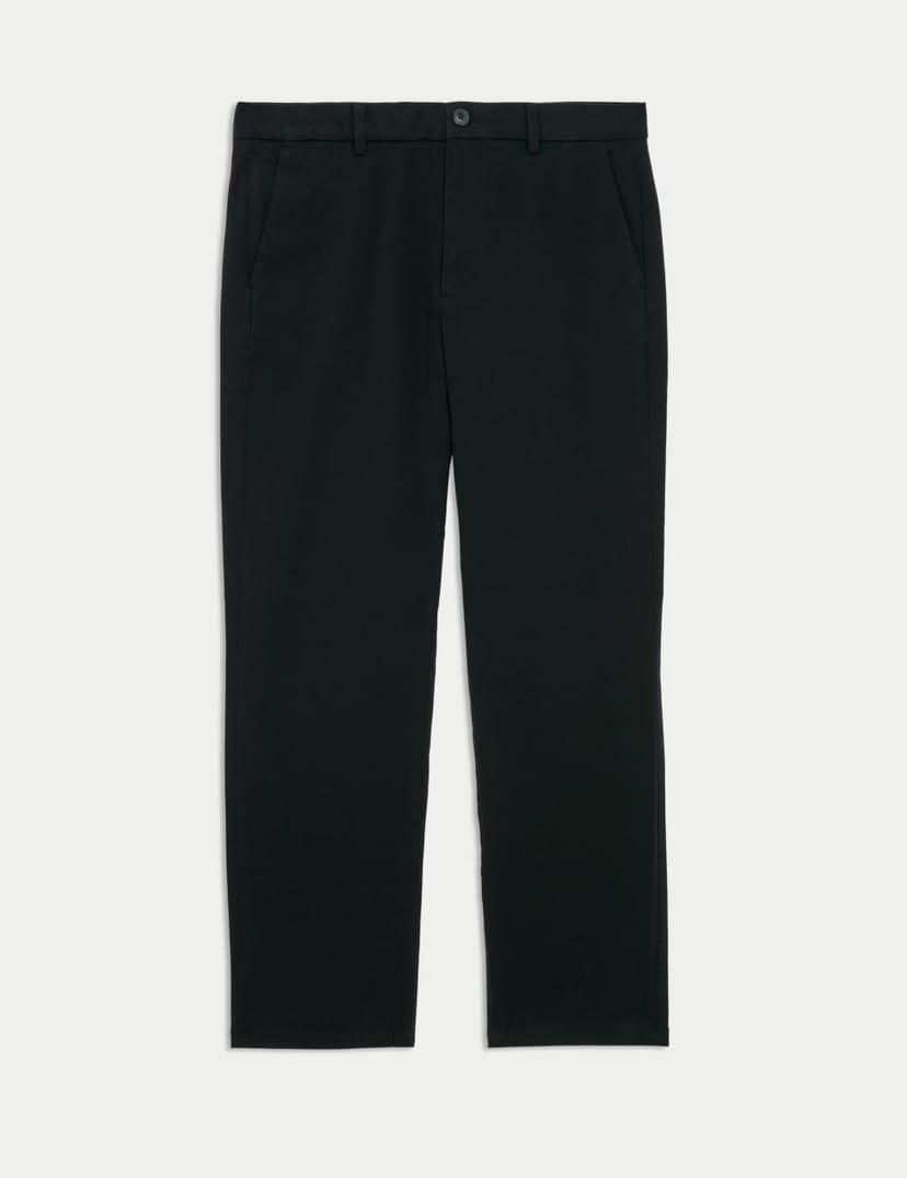 Smart chino trousers in black from M&S. Made from breathable four-way stretch fabric, these trousers offer a regular fit with an internal elasticated waistband for comfort. The water-repellent Stormwear™ finish ensures protection from the elements.
