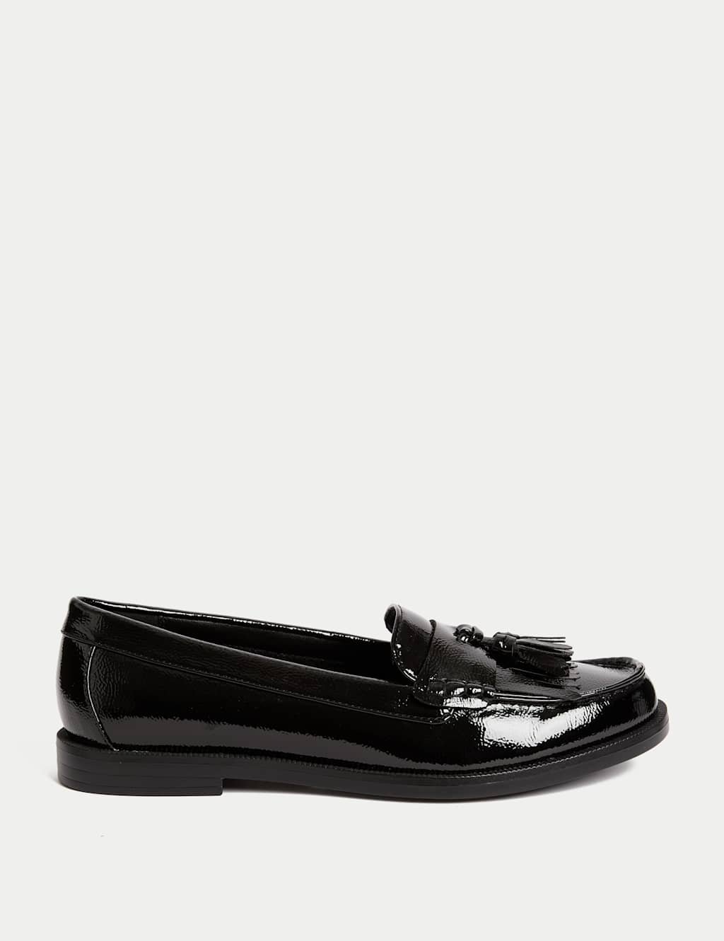The M&S Patent Tassel Slip On Loafers in Black is made from patent.