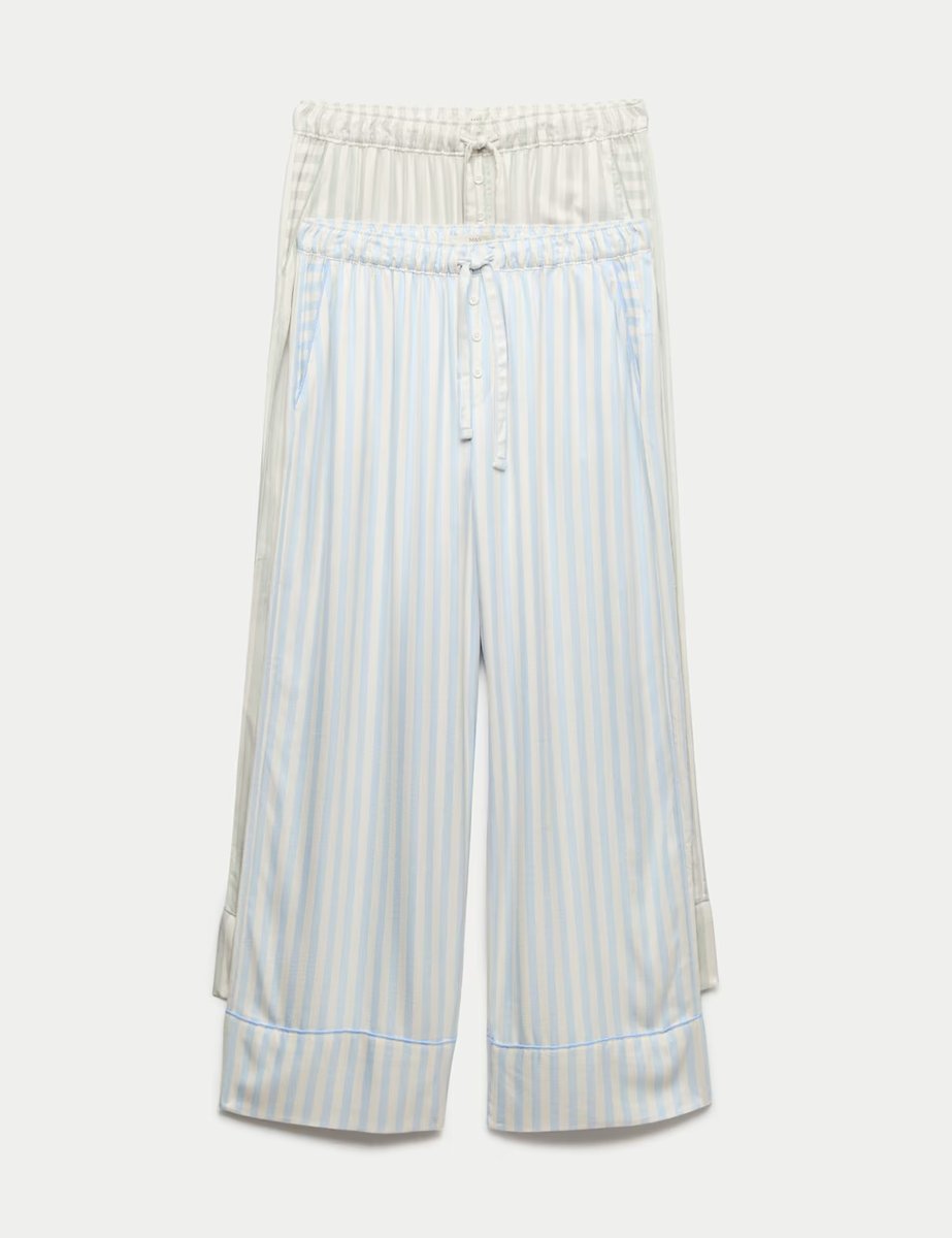 The M&S Comfortable Wide Leg Pyjama Bottoms in Blue Mix is ideal for sleeping, lounging.