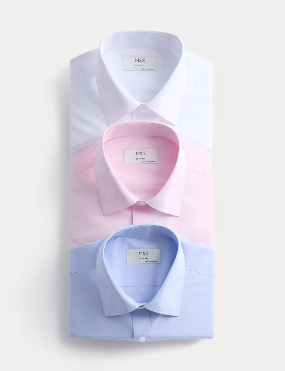 The M&S Slim Fit Easy Iron Shirts Blue Mix in Blue is ideal for work.