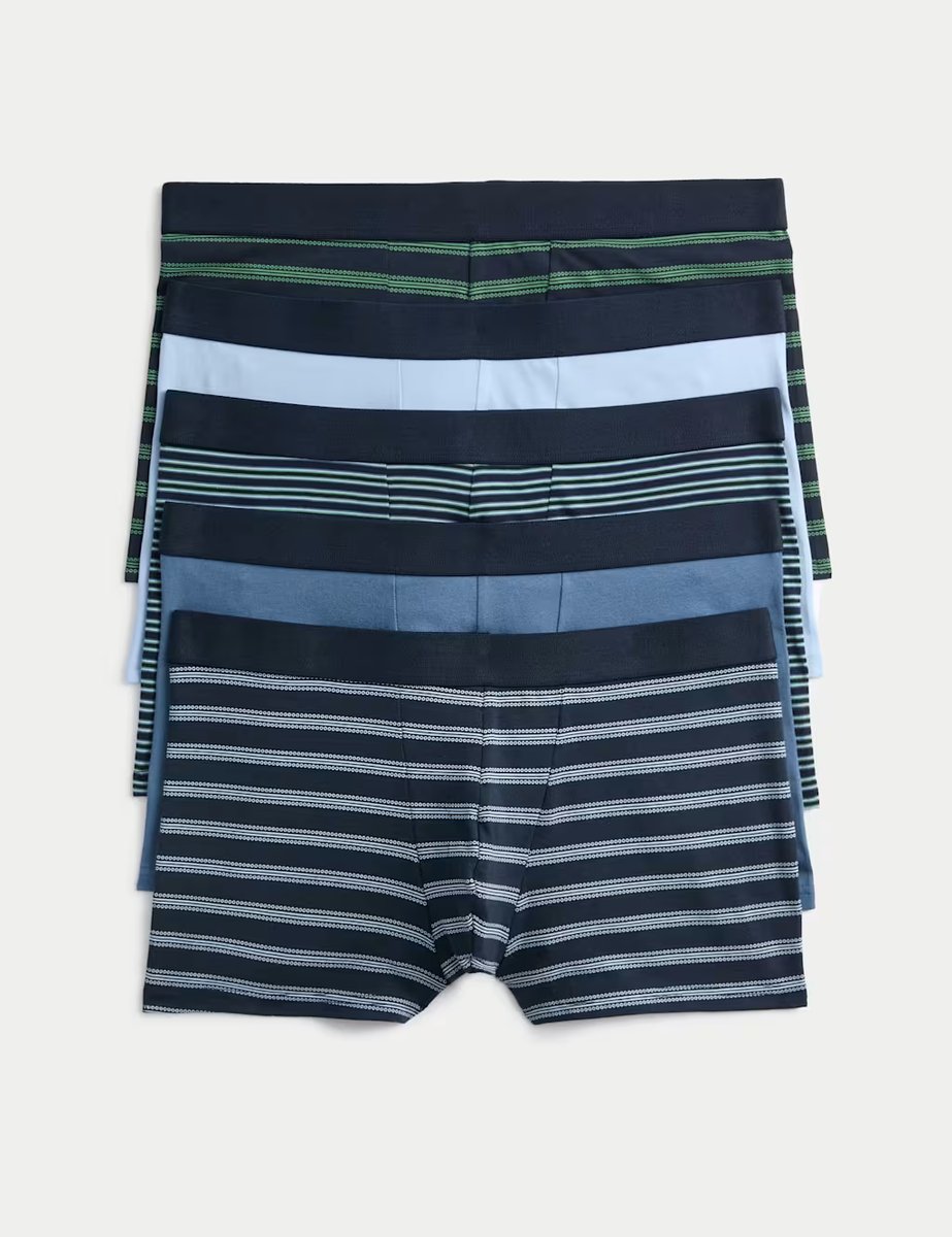 The M&S Cotton Rich Hipsters Blue Mix 5 Pack is ideal for casual, everyday.