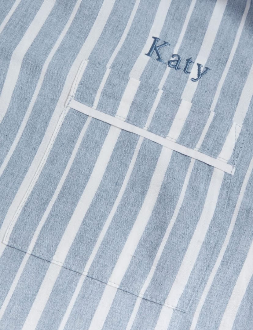 Personalised M&S pyjama set in blue mix stripes. Made from pure cotton with Cool Comfort™ technology for a cool and comfortable night's sleep. Features a classic design with customisable embroidery.