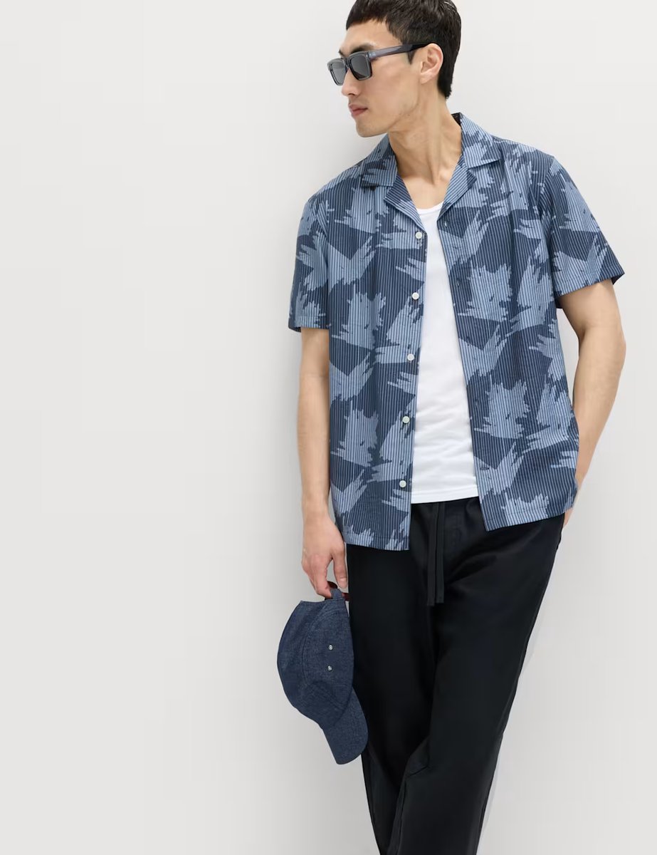 The M&S Bold Abstract Print Short Sleeve Shirt in Blue Mix is ideal for casual, smart-casual.