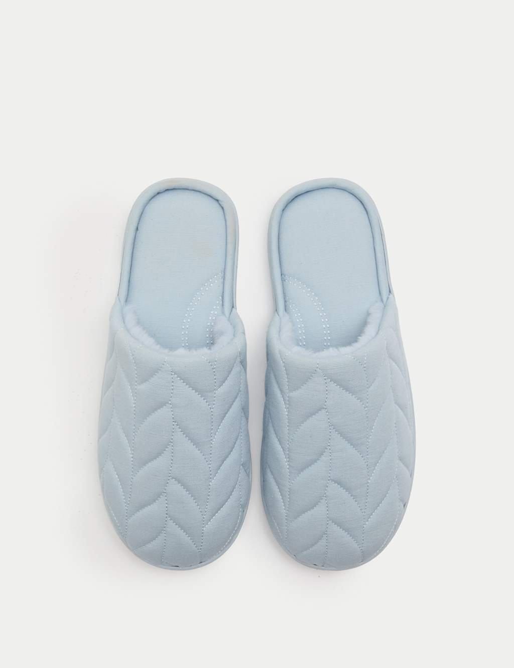 Comfortable mule slippers from M&S in a regular fit with a slip-on style. Made from durable synthetic material, these slippers feature a plain design with quilted detailing for added texture. Perfect for around-the-house wear.