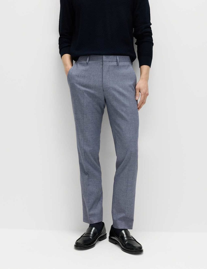 The M&S Blue Tailored Fit Micro Grid Trousers is ideal for formal, business, evening.