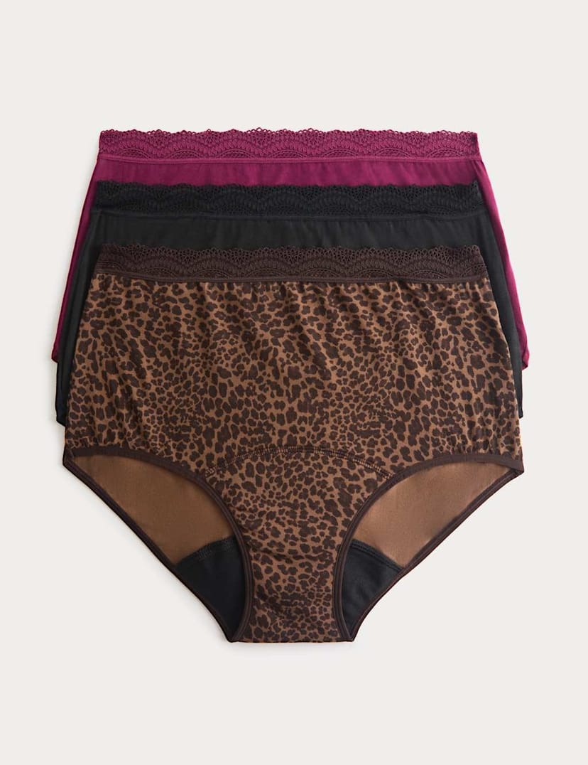 The M&S Brown Mix Cotton Period Briefs Pack of 3 is available in sizes 10, 12, 14, 16, 18, 20, 22, 24, 8.