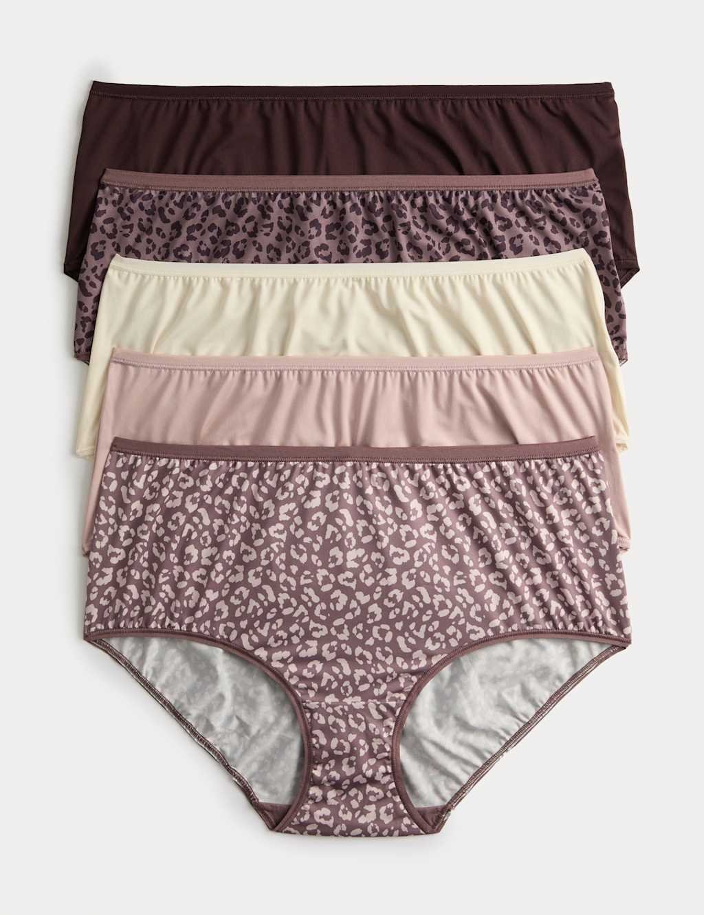 Brown Mix Microfibre High Rise Shorts — the must-have underwear for all-day comfort. Designed in a flattering high-rise style, these shorts feature a silky feel from the microfibre fabric. Perfect for everyday wear, they offer added stretch for maximum comfort. Includes a mix of solid and leopard print designs.