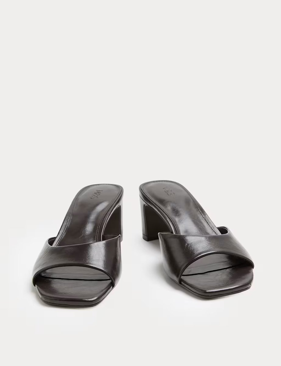 The M&S Block Heel Peep Toe Mules in Brown is ideal for smart-casual.