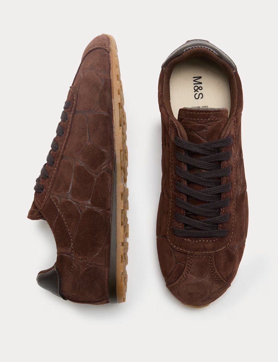 The M&S Suede Embossed Croc Trainers in Brown is ideal for casual, weekend.