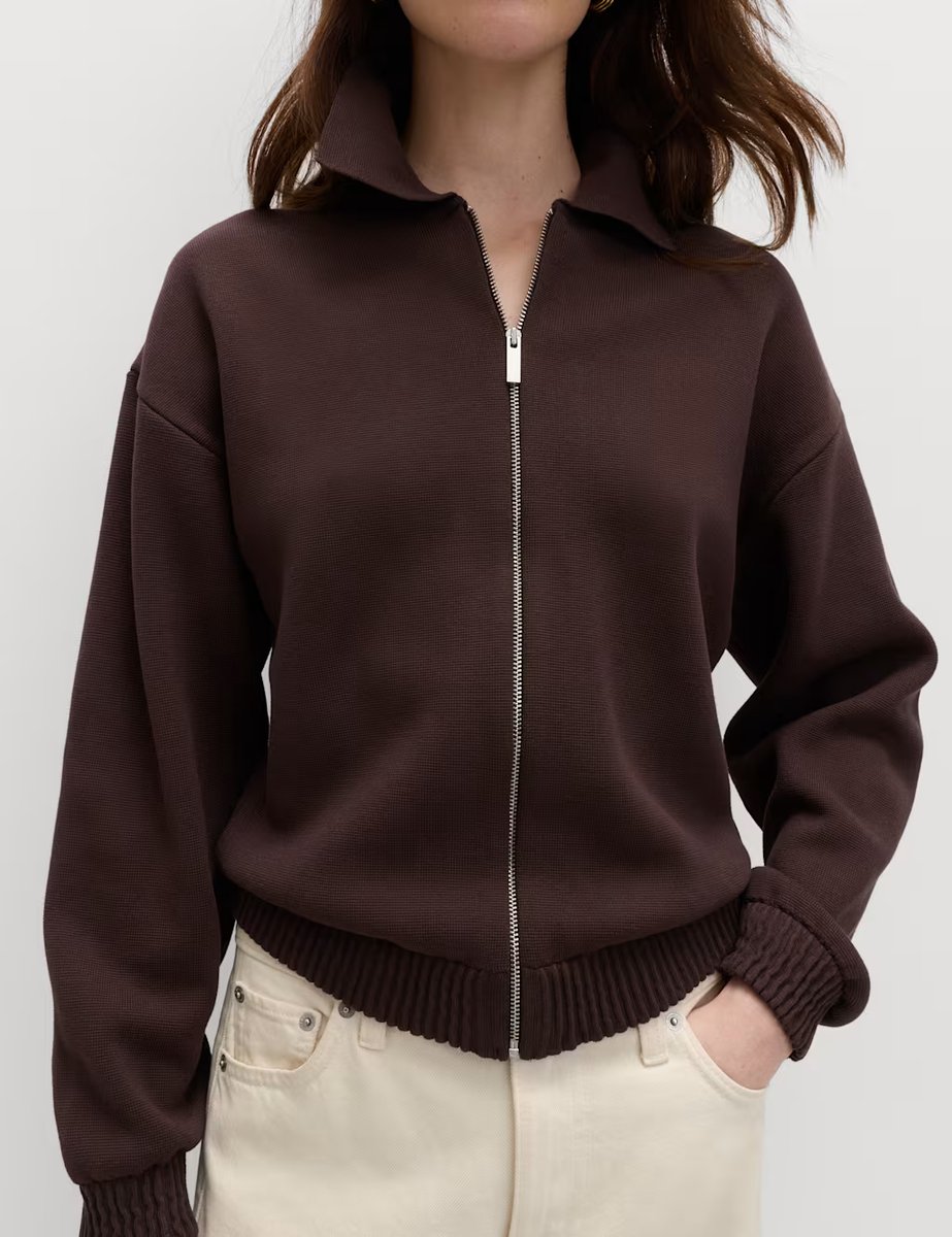 The M&S Zip Up Knitted Bomber Cardigan in Brown is ideal for casual, smart-casual.