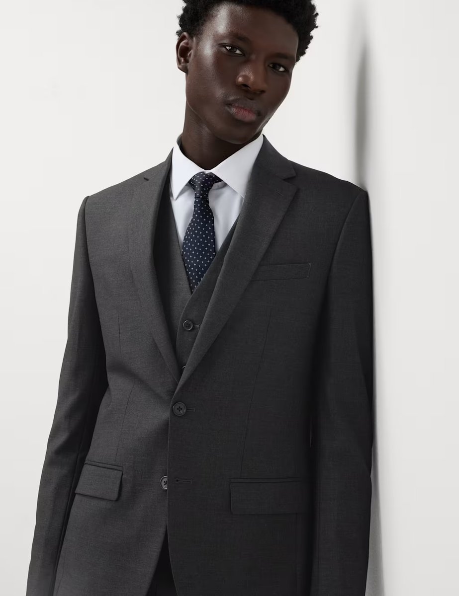 The M&S Slim Fit Stretch Ultimate Suit Jacket in Charcoal is ideal for business, formal.