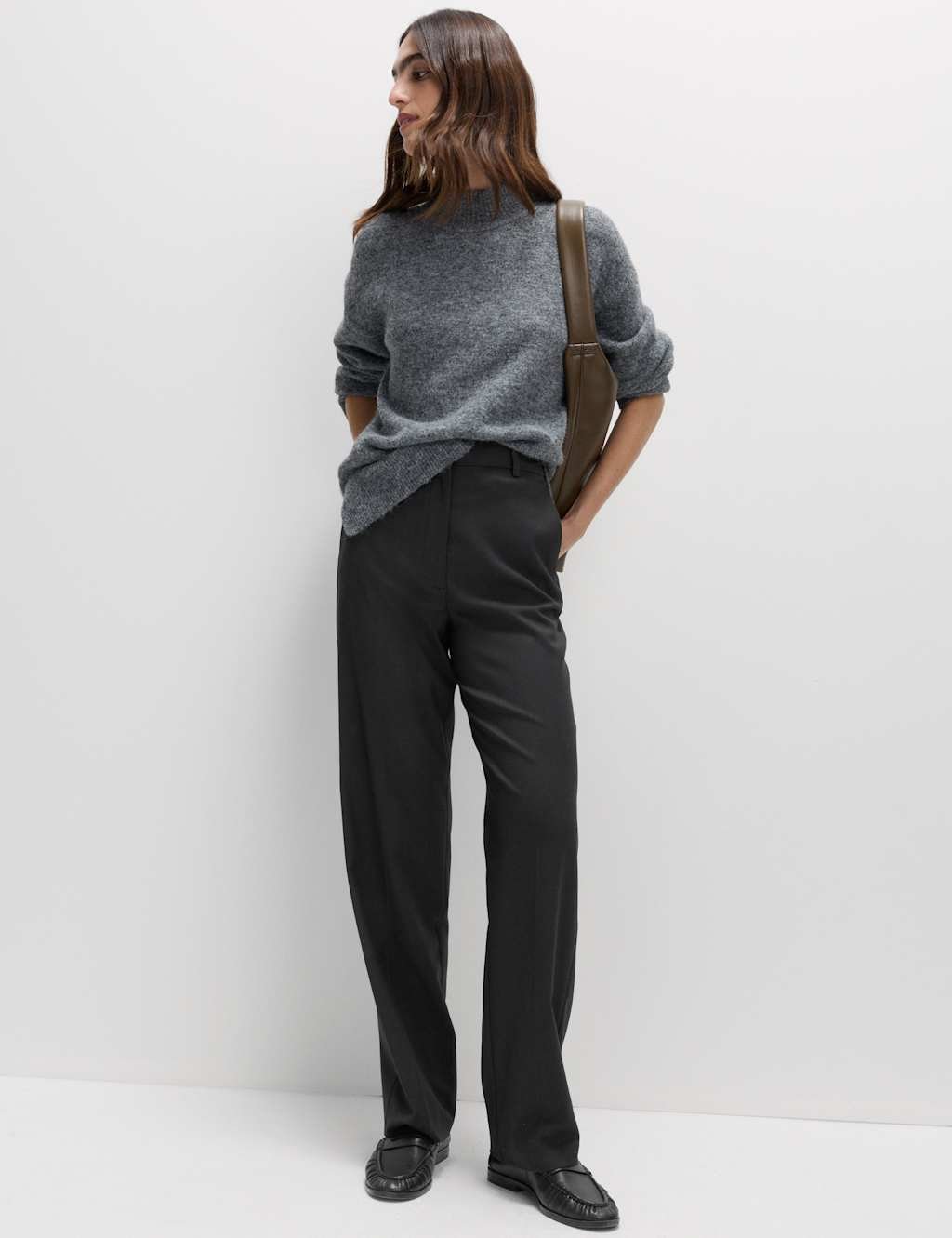 The M&S Charcoal Stretch Straight Leg Trousers is available in sizes 10, 12, 14, 16, 18, 20, 22, 24, 6, 8.