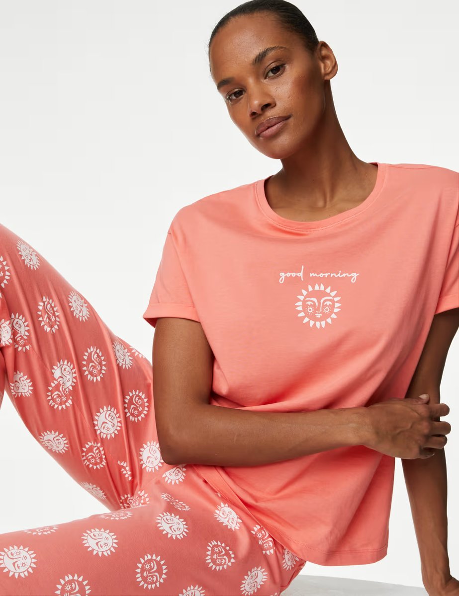 The M&S Coral Mix Pure Cotton Printed Pyjama Set is ideal for lounge.
