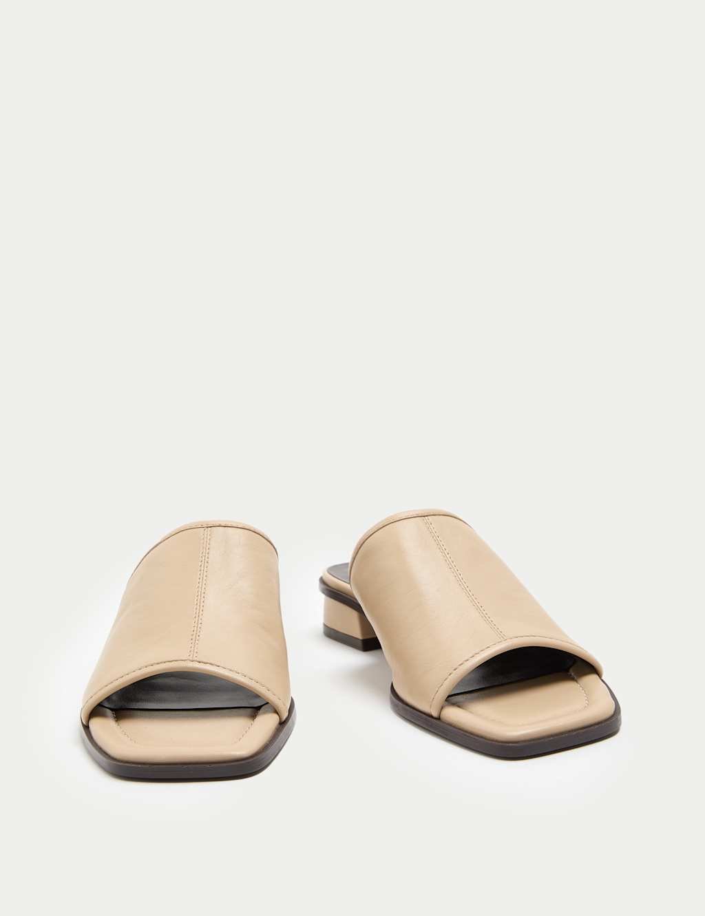 The M&S Cream Leather Block Heel Peep Toe Mules is made from leather.